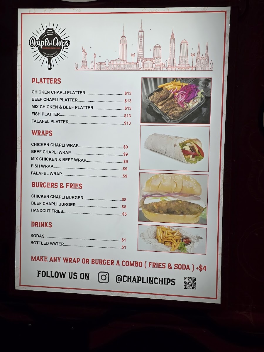 Welcome to Chapli & Chips, a hidden gem located at 257-03 Hillside Ave., Queens, NY. This food truck specializes in authentic Afghani cuisine, with the chapli kebab taking center stage. Each kebab is masterfully crafted—juicy, spicy, and bursting with flavor. Customers rave about the fresh, crispy fries that are perfectly paired with a variety of delectable sauces.